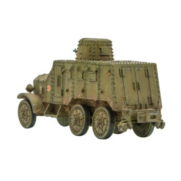 Box contains one resin & metal Type 91 So-Mo Armoured Car in its road configuration, decal sheet, and vehicle damage markers.