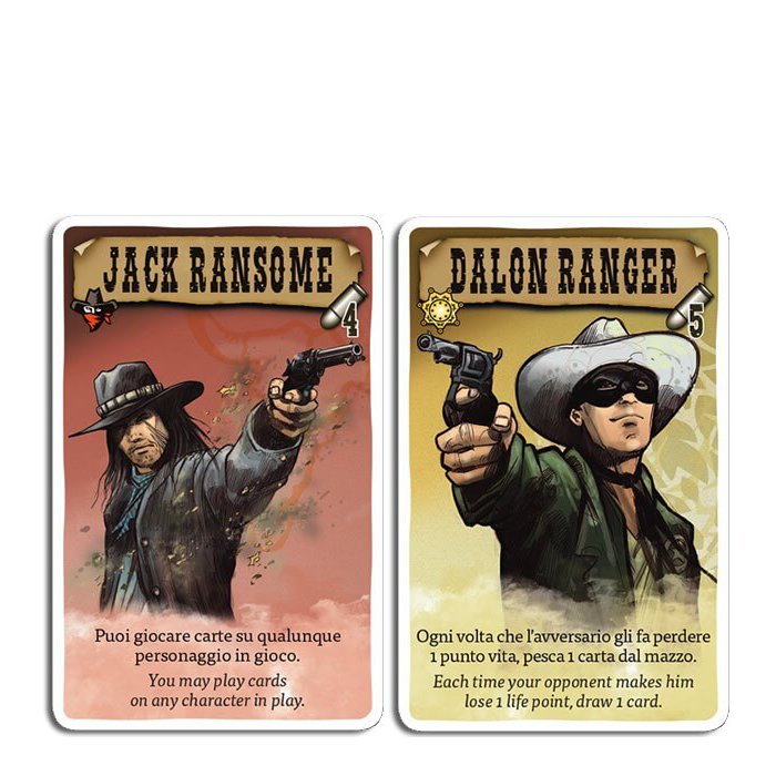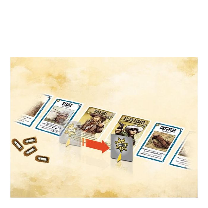 Per ogni fazione si schierano due personaggi alla volta, uno in prima linea e uno in retroguardia: solo chi saprà utilizzare con attenzione il posizionamento dei propri pistoleri, le proprie abilità e le risorse, farà mangiare la polvere al suo avversario e sarà così proclamato vincitore!