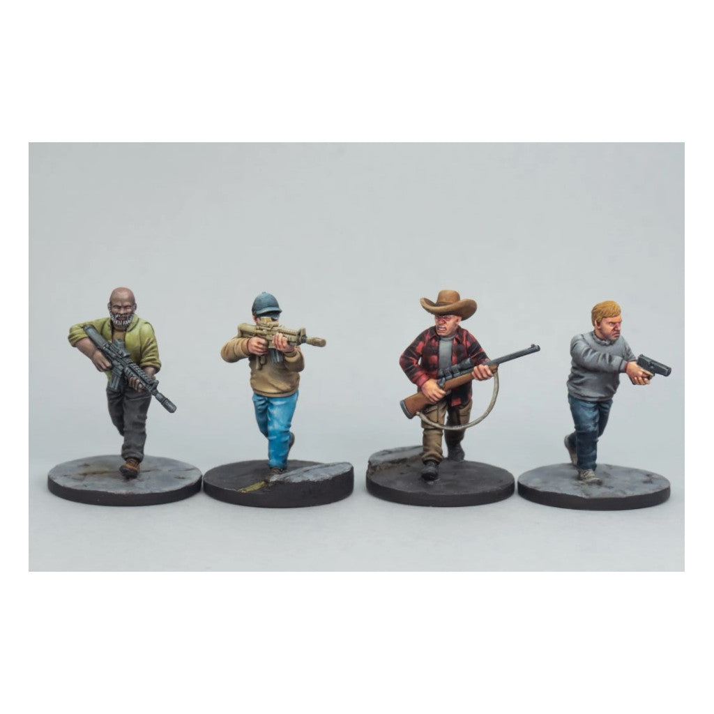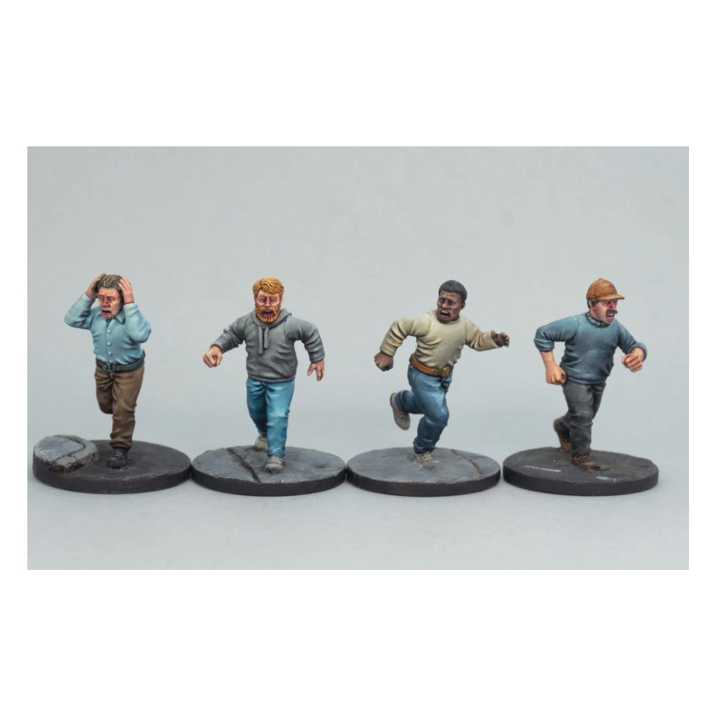 Freeze, flee, or fight? This hard plastic box set lets you build them all! Two unique frames give you six unique bodies that you can customize to either hold weapons, open handed in flight, or you can even turn some into sign-holding protesters!