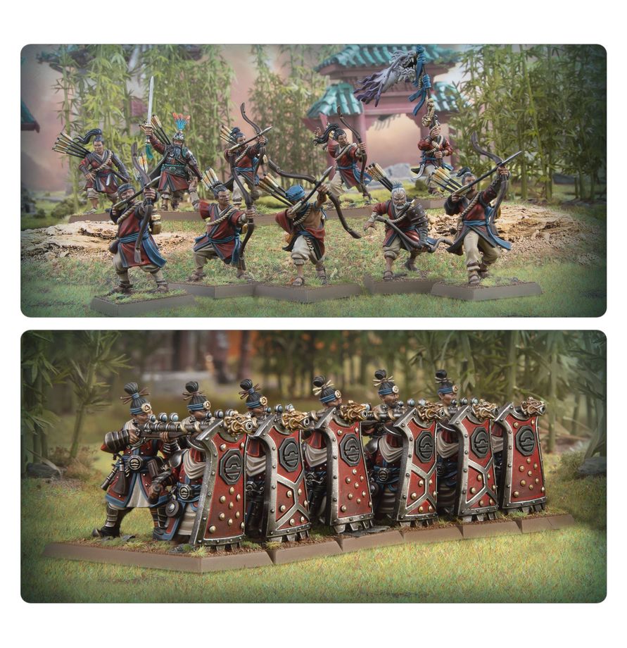 Questa scatola strabordante è l'ideale per iniziare una nuova collezione delle Armies of Grand Cathay o ampliare un'armata già esistente da scatenare nelle partite a Warhammer: The Old World. Due Astromancers, uno a piedi e l'altro in sella, conducono questi rinforzi supportandoli con la magia. Il grosso della forza è costituito da Peasant Levy in grado di sopraffare anche i nemici più tenaci grazie alla superiorità numerica. Crane Gun Teams e Iron Hail Gunners aggiungono una potenza di fuoco considerevole e sono capaci di abbattere qualsiasi nemico da lontano. Il set è il primo modo per procurarti tutte queste nuove miniature.